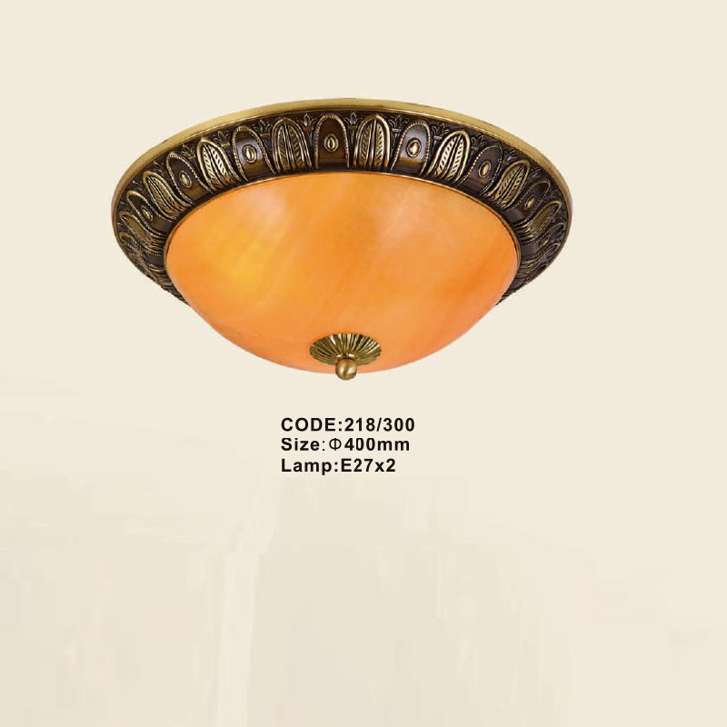 5. CODE: 218/300: Đèn áp trần đồng chao đá - KT: Ø300mm - Bóng đèn E27 x 2 bóng