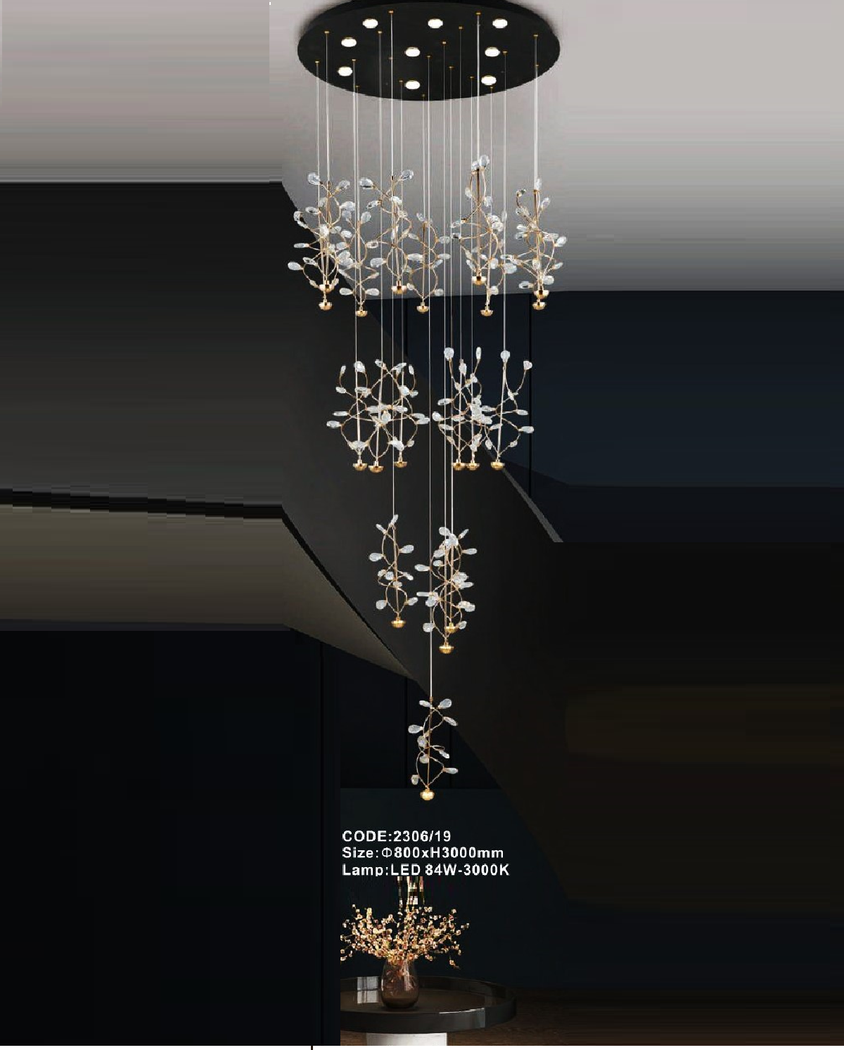 • Sản phẩm: CODE: 2306/19: Đèn thả 19 chao lá Phale LED - KT: Ø800mm x H3000mm - Đèn LED 84W ánh sáng vàng 3000K
