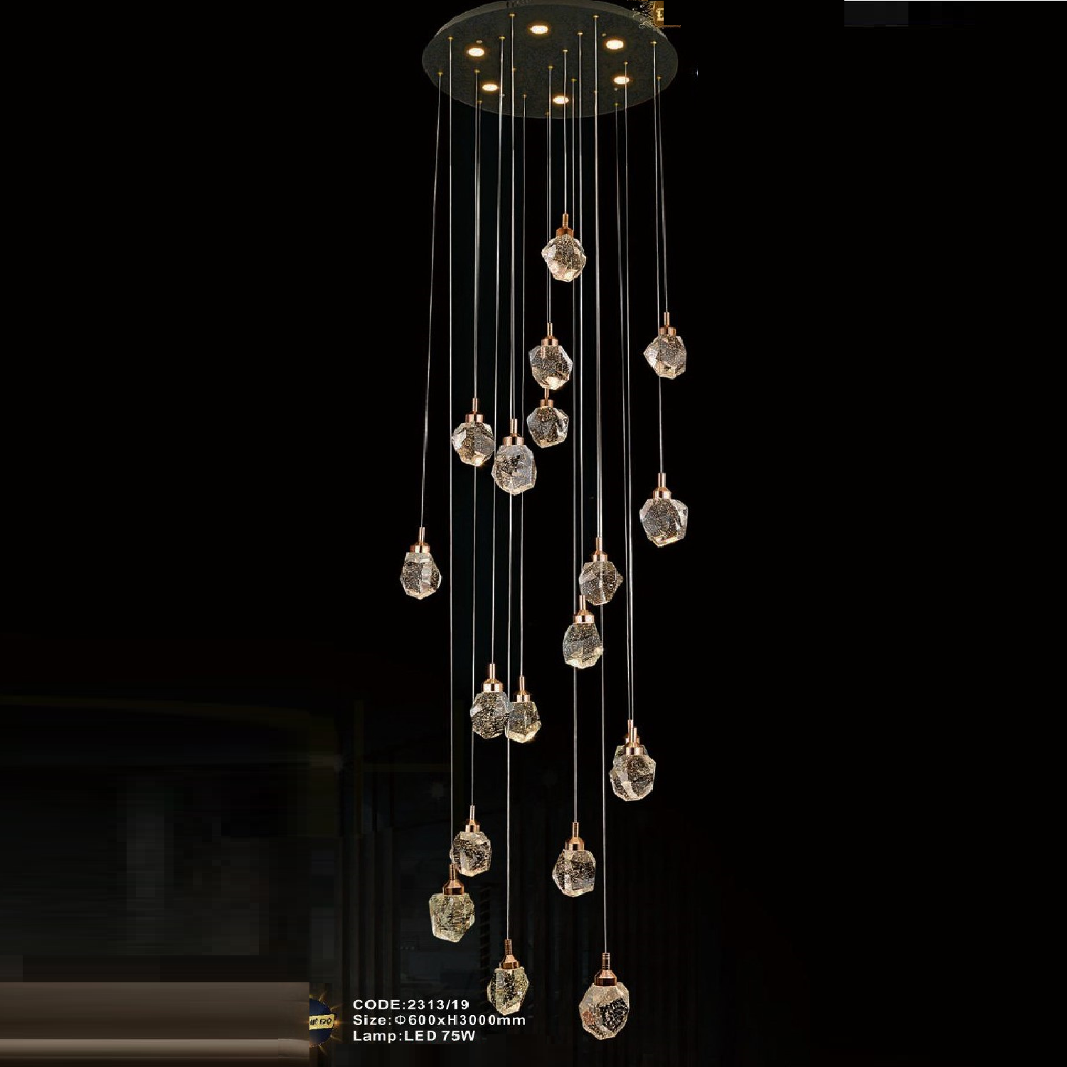 CODE: 2313/19: Đèn thả 19 thẻ Phale LED - KT: Ø600mm x H3000mm - Đèn LED 75W đổi 3 màu