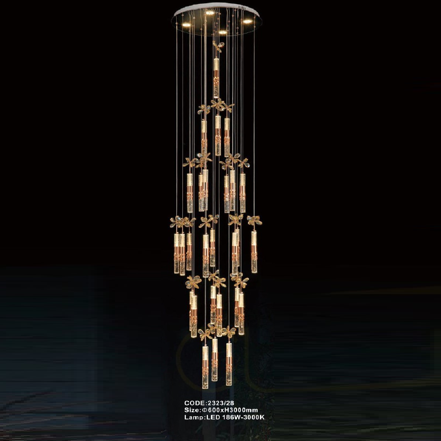CODE: 2323/28: Đèn thả 28 thanh Phale LED - KT: Ø600mm x H3000mm - Đèn LED 186W ánh sáng vàng