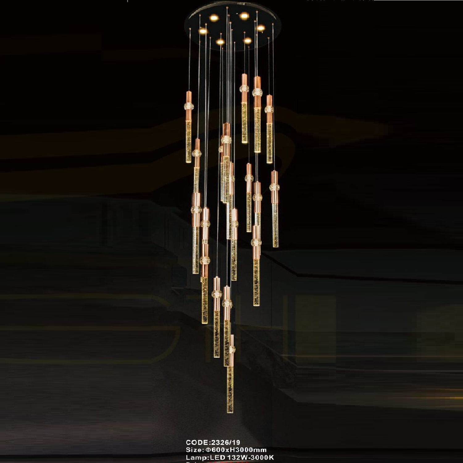 CODE: 2326/19: Đèn thả 19 thanh Phale LED - KT: Ø600mm x H3000mm - Đèn LED 132W ánh sáng vàng 3000K