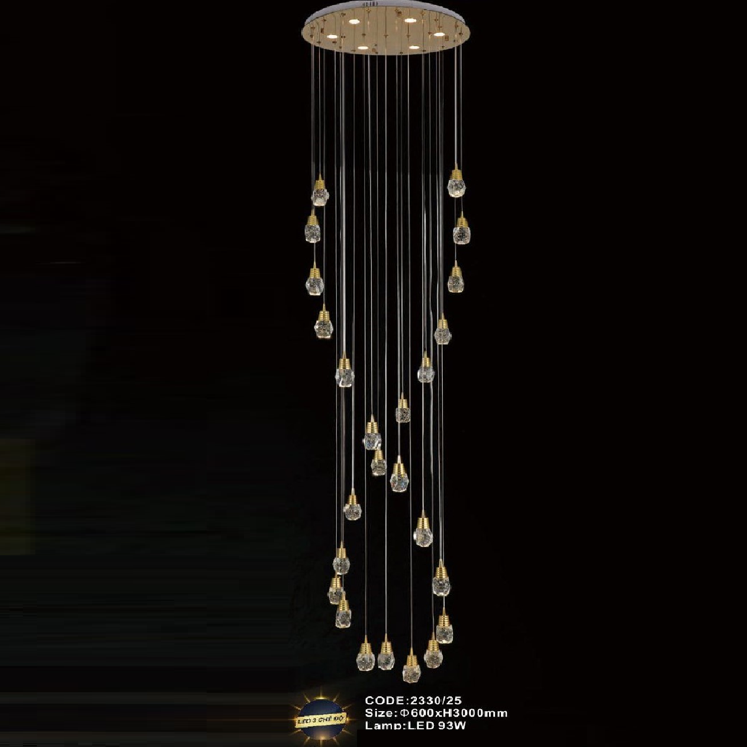• Sản phẩm: CODE: 2330/25: Đèn thả 25 chao Phale đèn LED - KT: Ø600mm x H3000mm - Đèn LED 93W đổi 3 màu