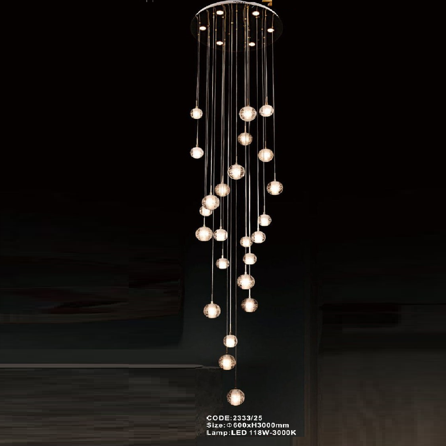 • Sản phẩm: CODE: 2333/25: Đèn thả 25 chao bi tròn LED - KT: Ø600mm x H3000mm - Đèn LED 118W ánh sáng vàng 3000K