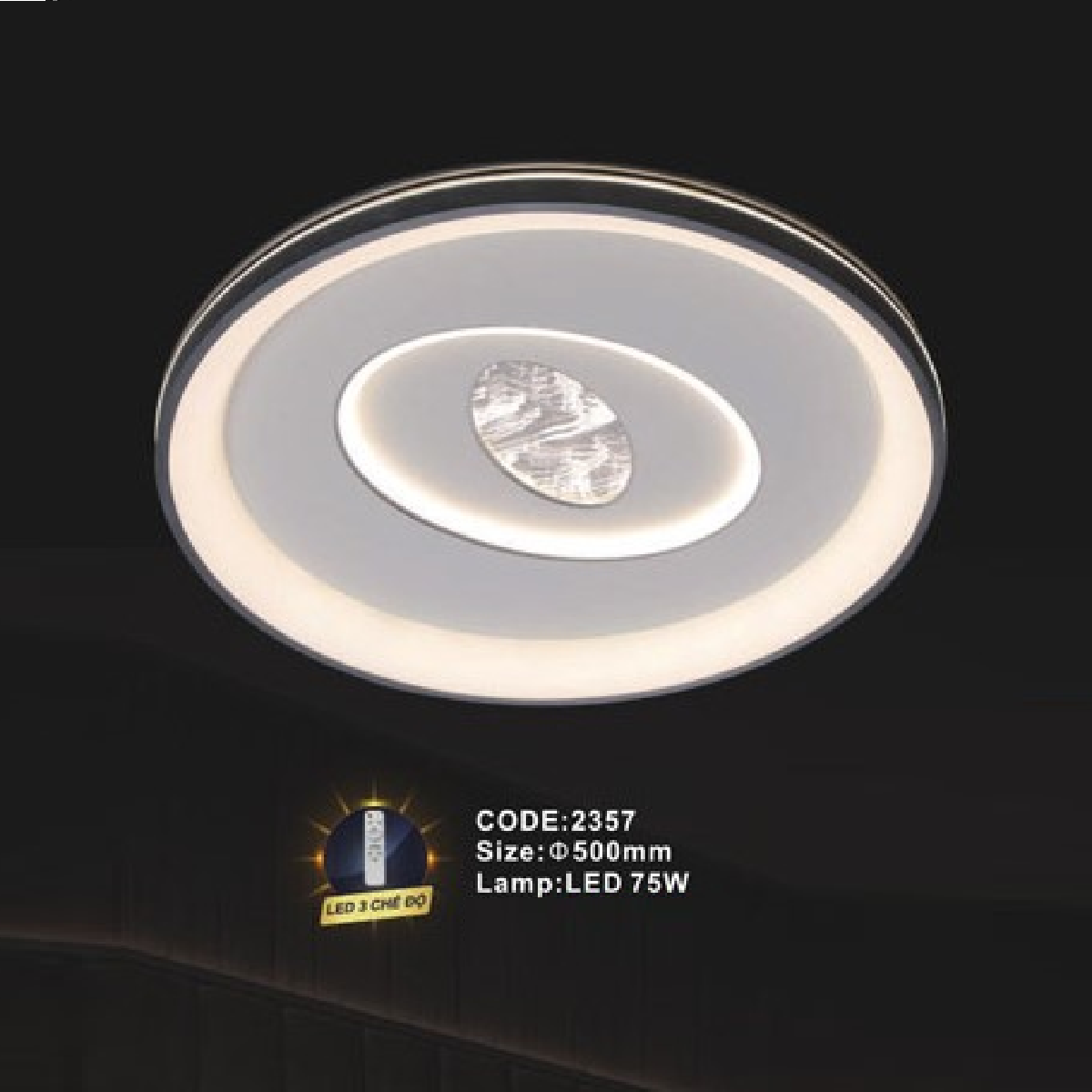 5. CODE: 2357: Đèn áp trần LED - KT: Ø500mm - Đèn LED 75W ánh sáng đổi 3 màu