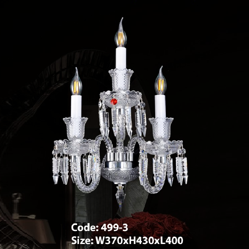 CODE: 499-3: Đèn gắn tường 3 bóng Phale K9 - KT: L400mm x W370mm x H430mm - Bóng đèn nến chân E14 x 3