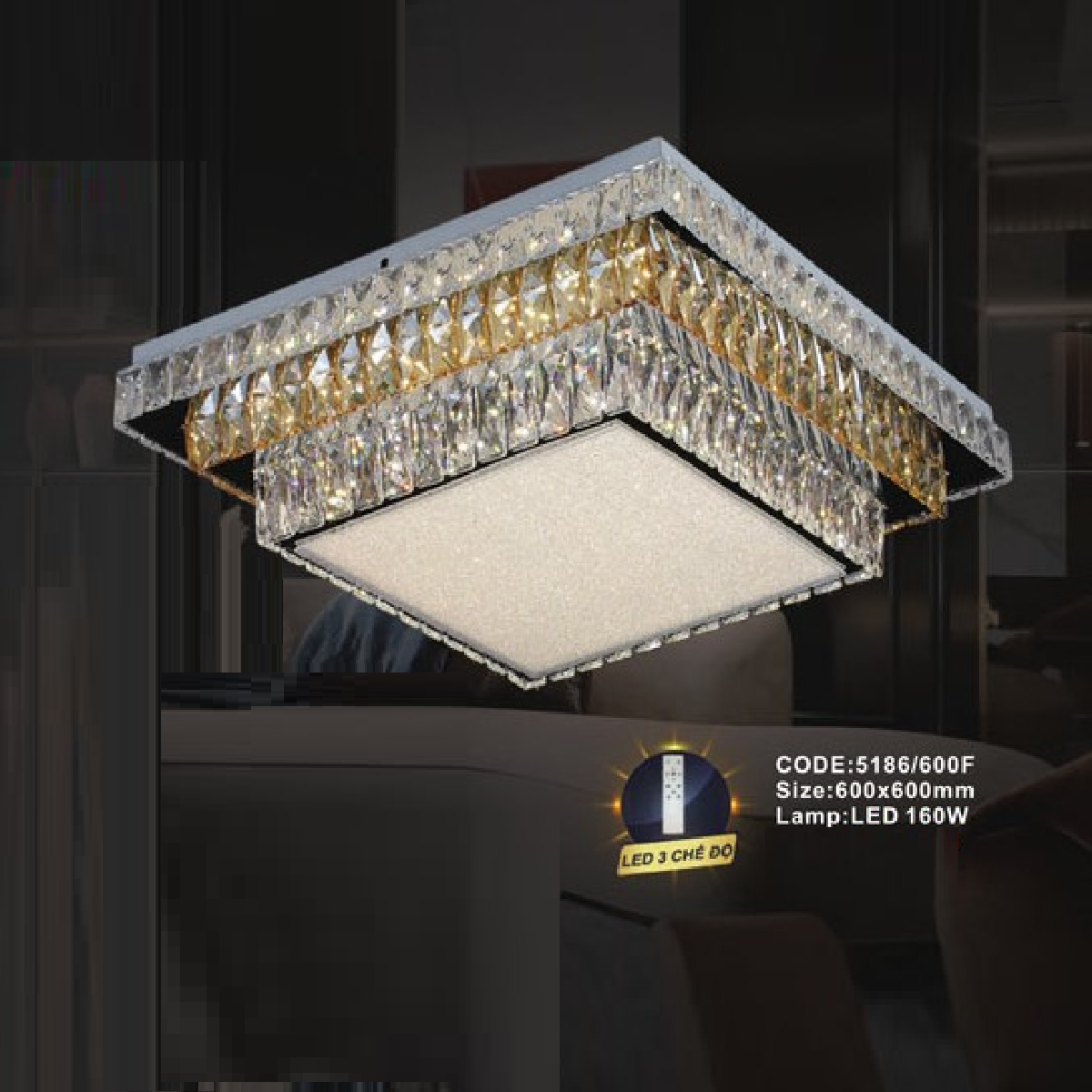 5. CODE: 5186/600F: Đèn áp trần vuông LED - KT: L600mm x W600mm - Đèn LED 160W ánh sáng đổi màu
