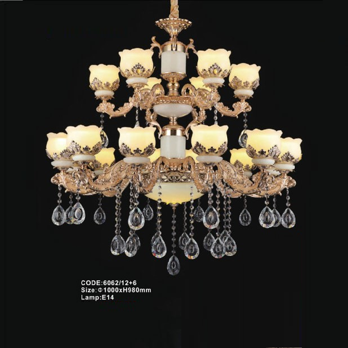 5. CODE: 6062/12+6: Đèn chùm 18 tay chao thủy tinh - KT: Ø1000mm x H980mm - Bóng đèn E14 x 18 bóng