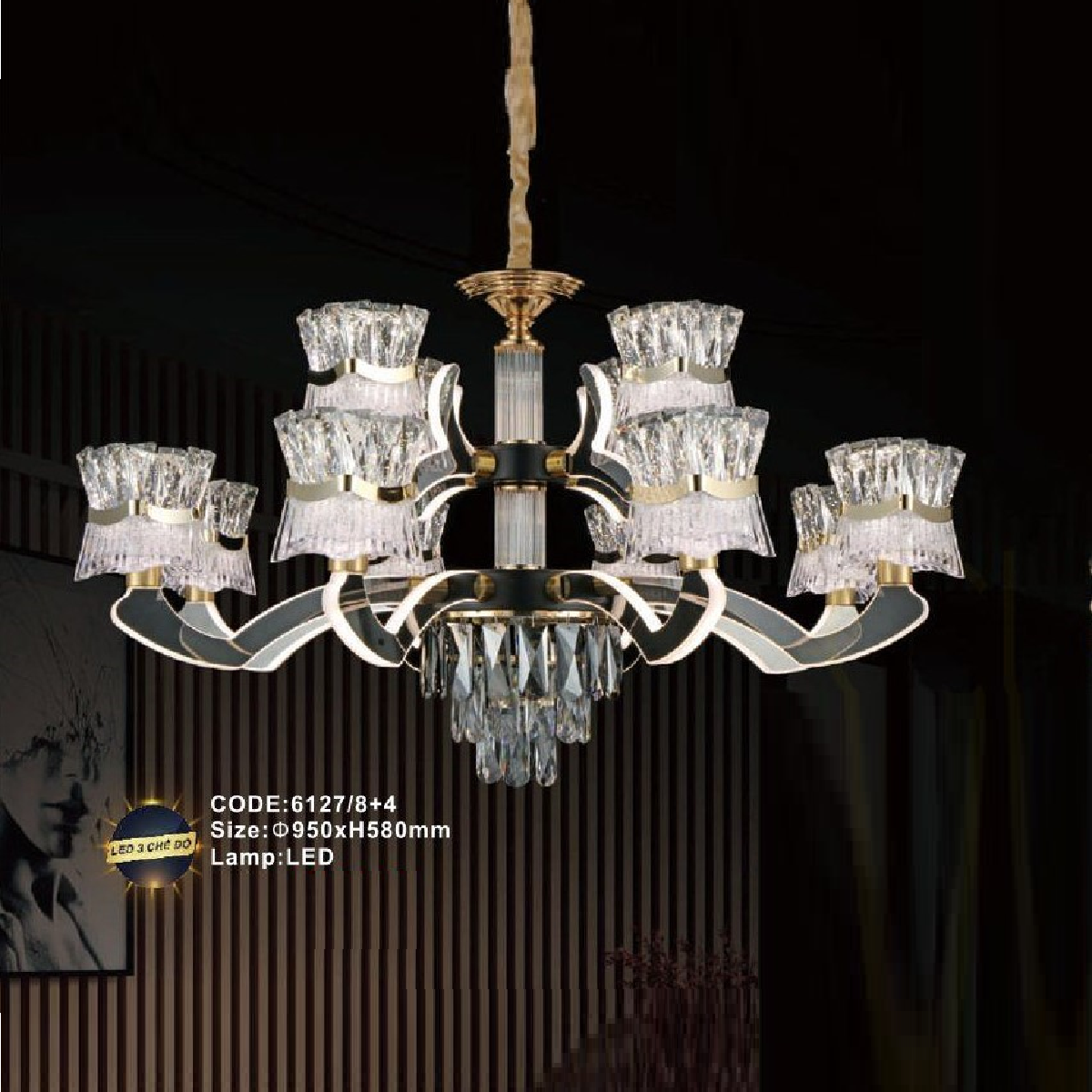- Sản phẩm: CODE: 6127/8+4: Đèn chùm LED 12 tay - KT: Ø950mm x H580mm - Đèn LED đổi 3 màu