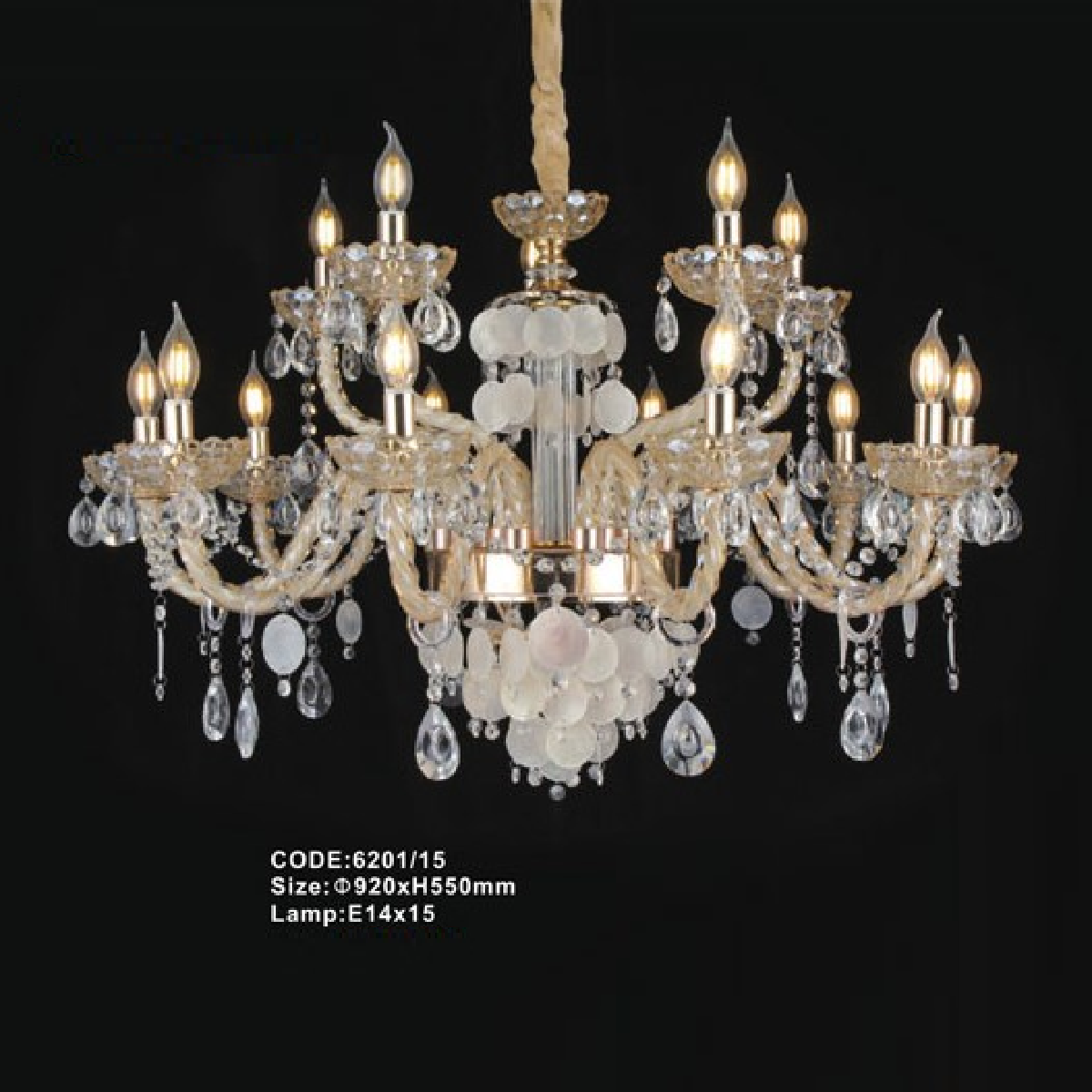 - Sản phẩm: CODE: 6201/15: Đèn chùm nến 15 tay - KT: Ø920mm x H550mm - Bóng đèn nến E14 x 15 bóng