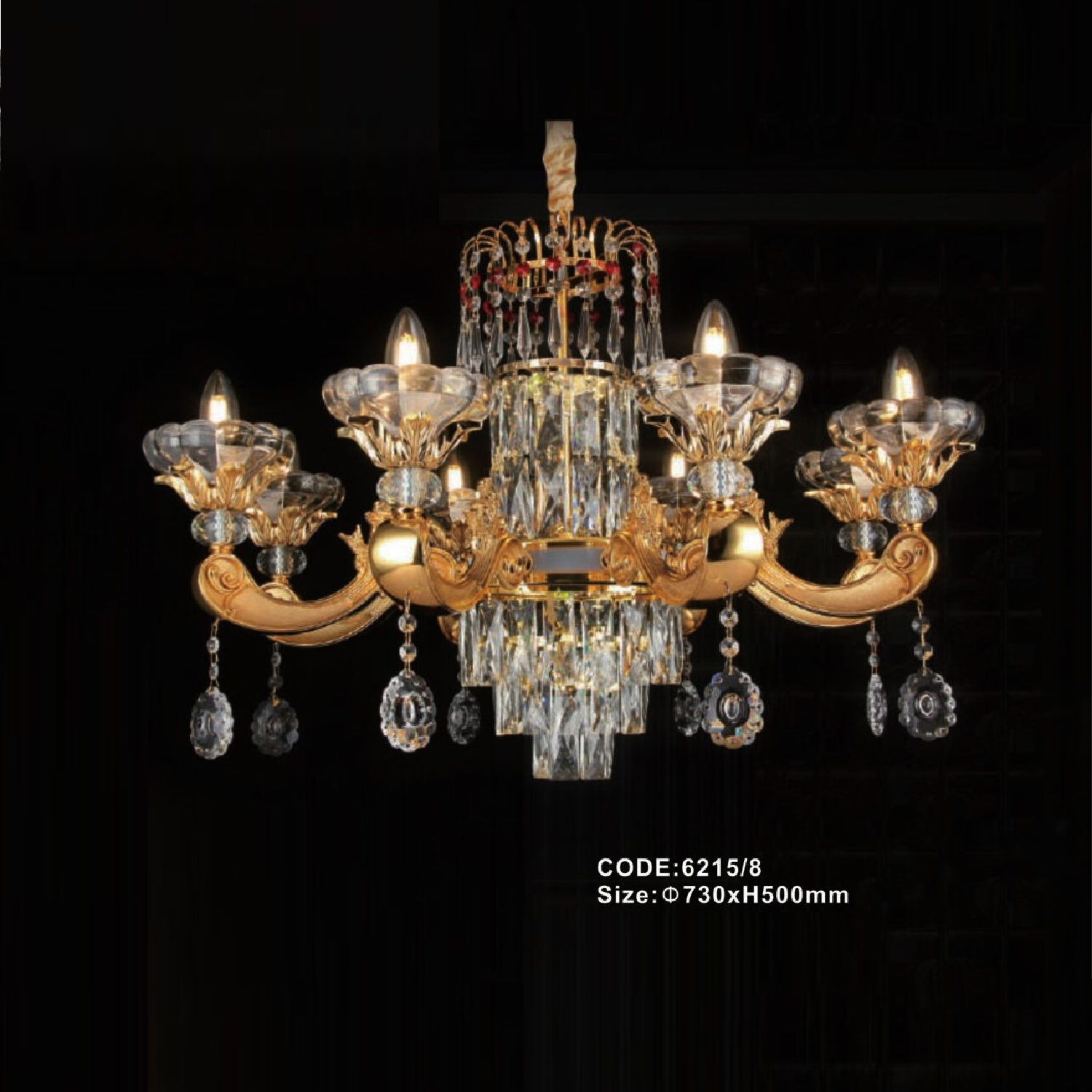 CODE: 6215/8: Đèn chùm Phale nến 6 tay, chao thủy tinh - KT: Ø730mm x H500mm - Bóng đèn E14 x 8 bóng + Đèn LED