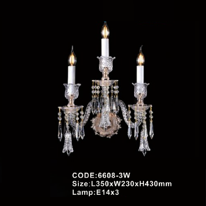 5. CODE: 6608 - 3W: Đèn Gắn tường Phale nến 3 bóng - KT: L350mm x W230mm x H430mm - Đèn LED 3W + Bóng đèn nến E14 x 3 bóng