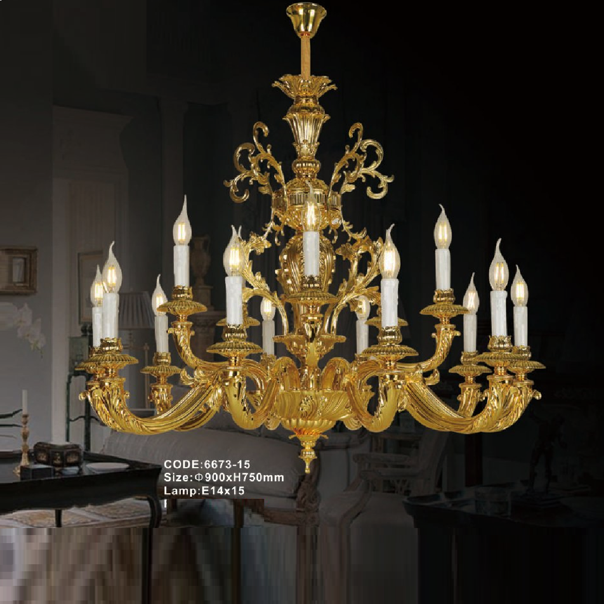 5. CODE: 6673 -15: Đèn chùm nến 15 tay - KT: Ø900mm x H750mm - Bóng đèn nến chân E14 x 15 bóng
