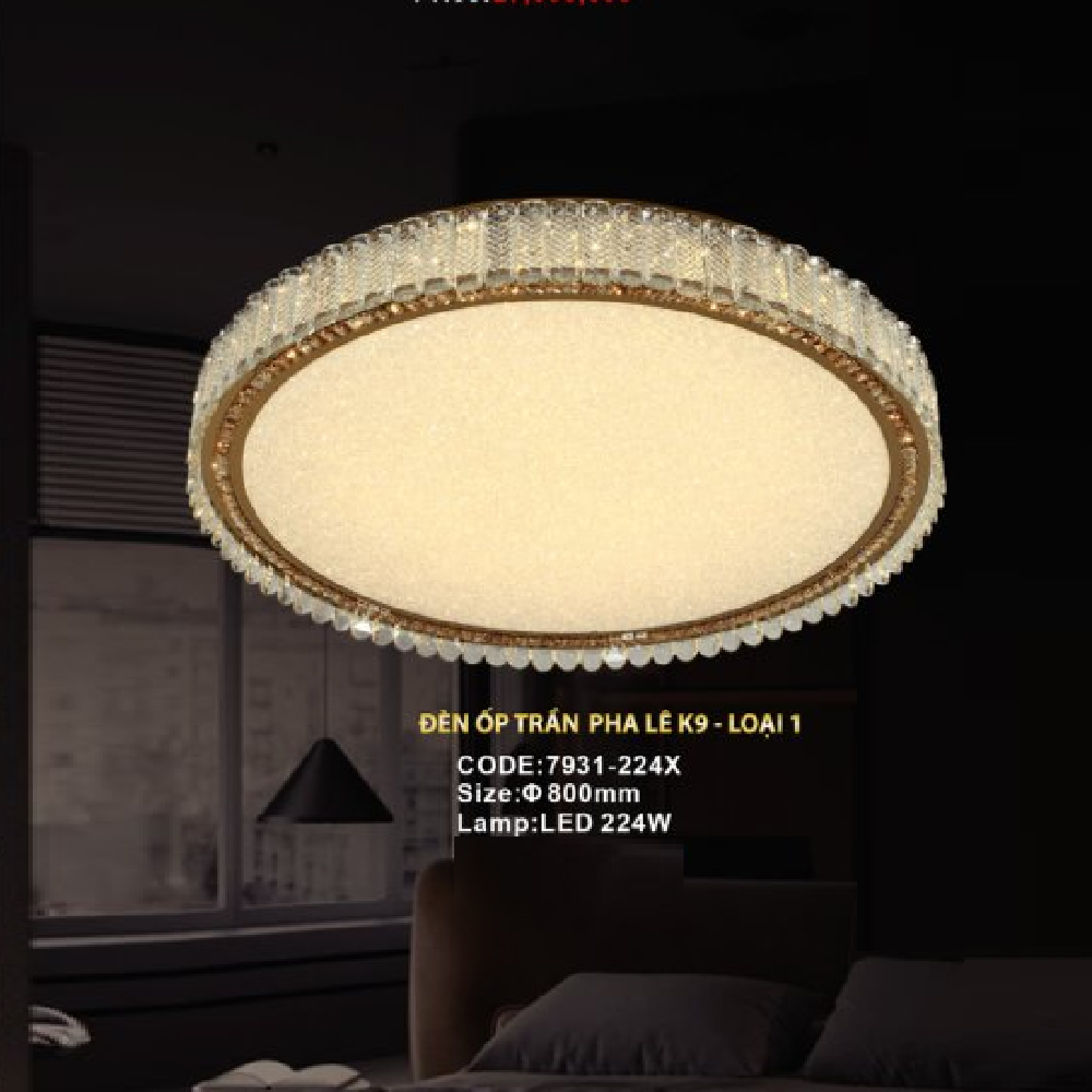 CODE: 7083 - 226X: Đèn áp trần Phale K9 - KT: Ø800mm x Đèn LED 226W