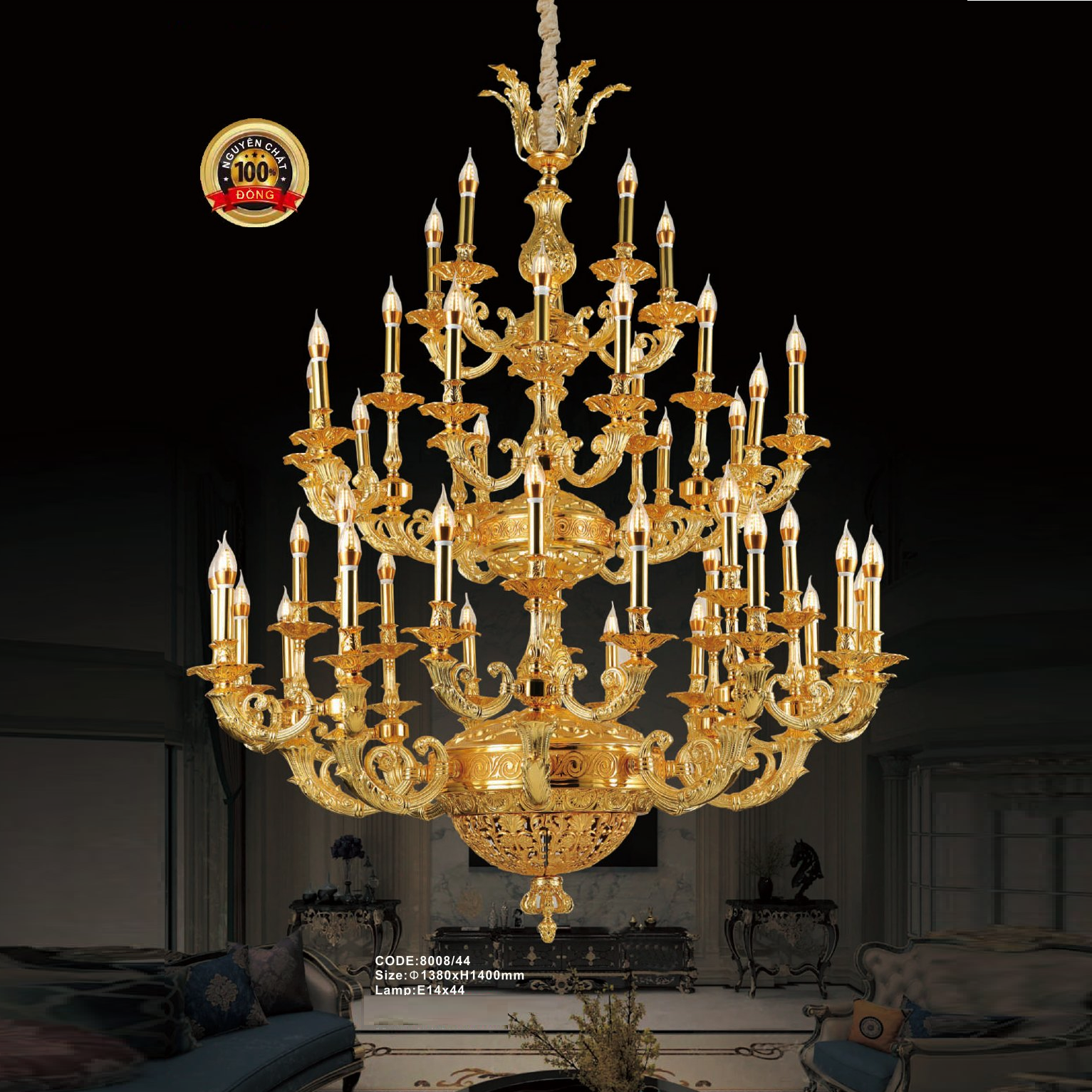 5. CODE: 8008/44: Đèn chùm đồng nến 44 tay - KT: Ø1380mm x H1400mm - Bóng đèn E14 x 44 bóng