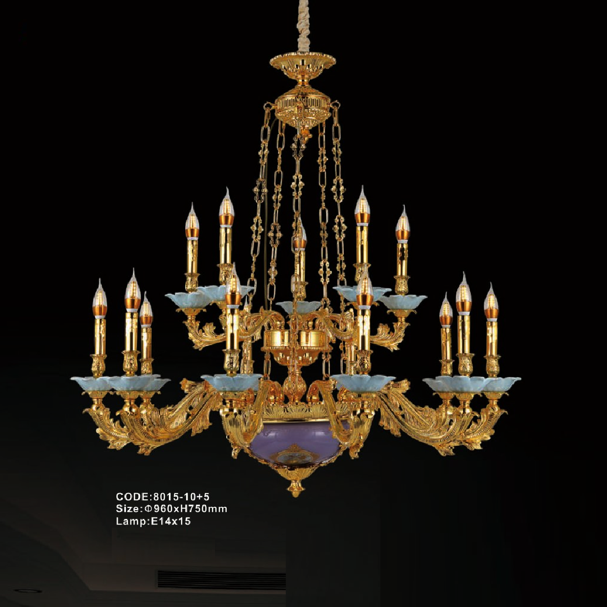 CODE: 8015 - 10+5: Đèn chùm nến 15 tay - KT: Ø960mm x H750mm - Bóng đèn nến E14 x 15 bóng