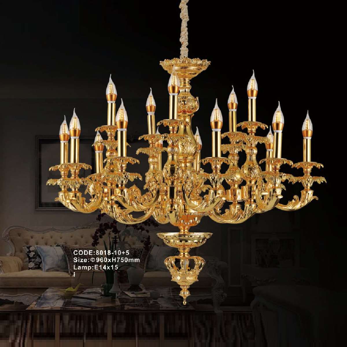 5. CODE: 8018/10+5: Đèn chùm nến 15 tay - KT: Ø960mm x H750mm - Bóng đèn nến E14 x 15 bóng