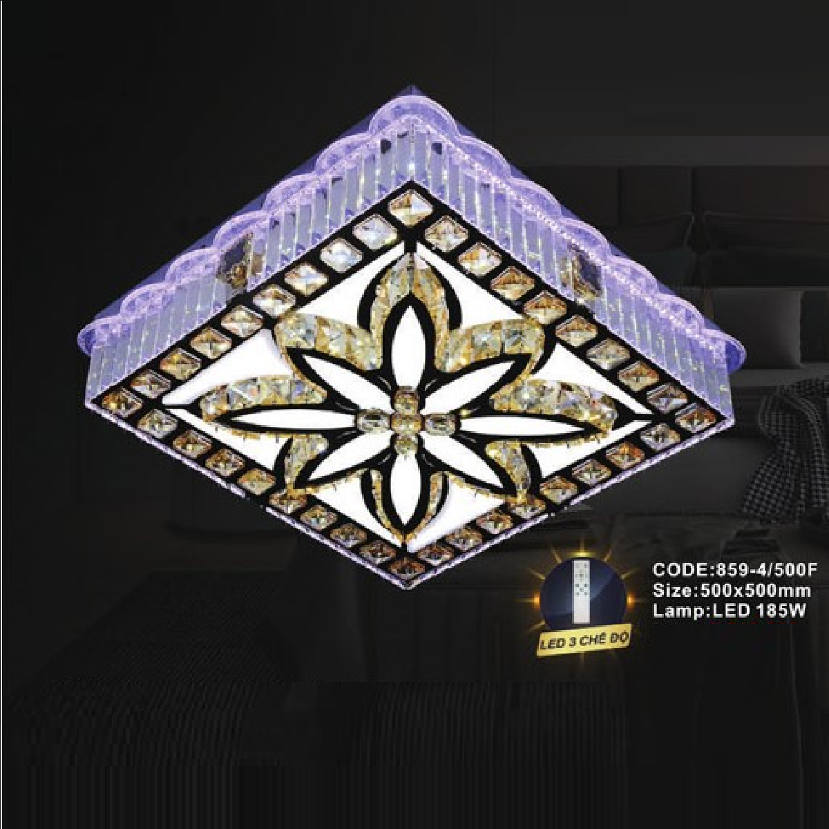 - Sản phẩm: CODE: 859-4/500F: Đèn áp trần vuông LED - KT: L500mm x W500mm - Đèn LED 185W đổi 3 màu