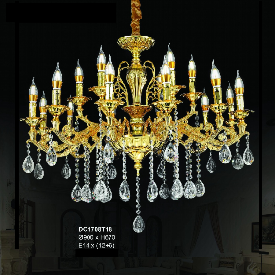 • Sản phẩm: 35 - DC1708T18: Đèn chùm nến 18 tay - KT: Ø900mm x H670mm - Đèn nến chân E14 x 12 bóng