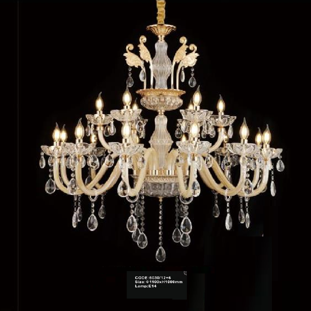 5. CODE: 8630/12+6: Đèn chùm nến 18 tay - KT: Ø1100mm x H1000mm - Đèn nến chân E14 x 18