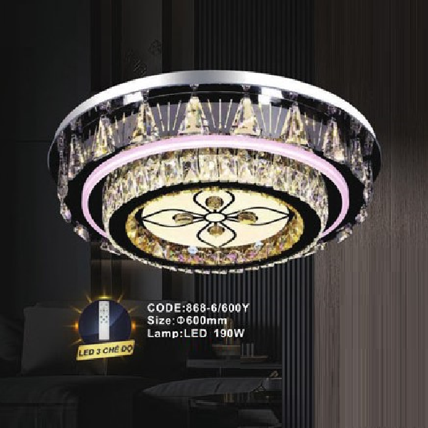 - Sản phẩm: CODE: 868-6/600Y: Đèn áp trần LED - KT: Ø600mm - Đèn LED 190W, ánh sáng đổi 3 màu