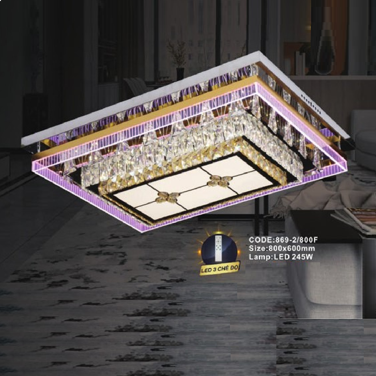 3. CODE: 869-2/800F: Đèn áp trần chữ nhật LED - KT: L800mm x W600mm - Đèn LED 245W đổi màu