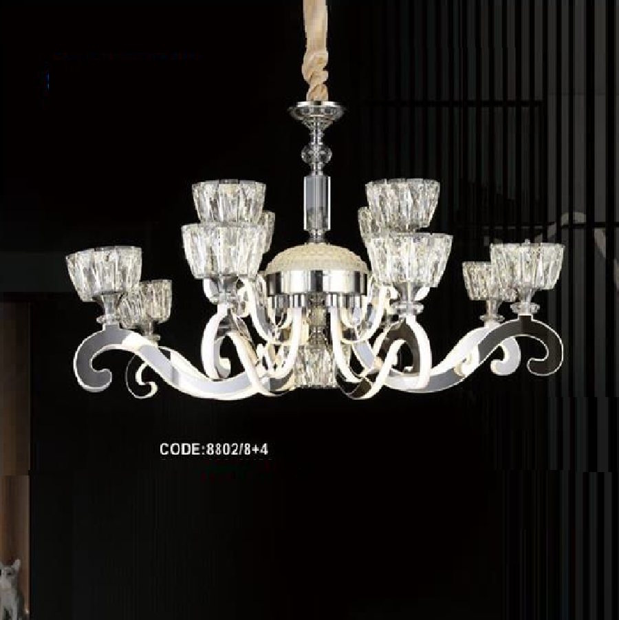 • Sản phẩm: CODE: 8802/8+4: Đèn chùm LED 12 tay, chao thủy tinh/Phale - KT: Ø930mm x H480mm - Đèn LED