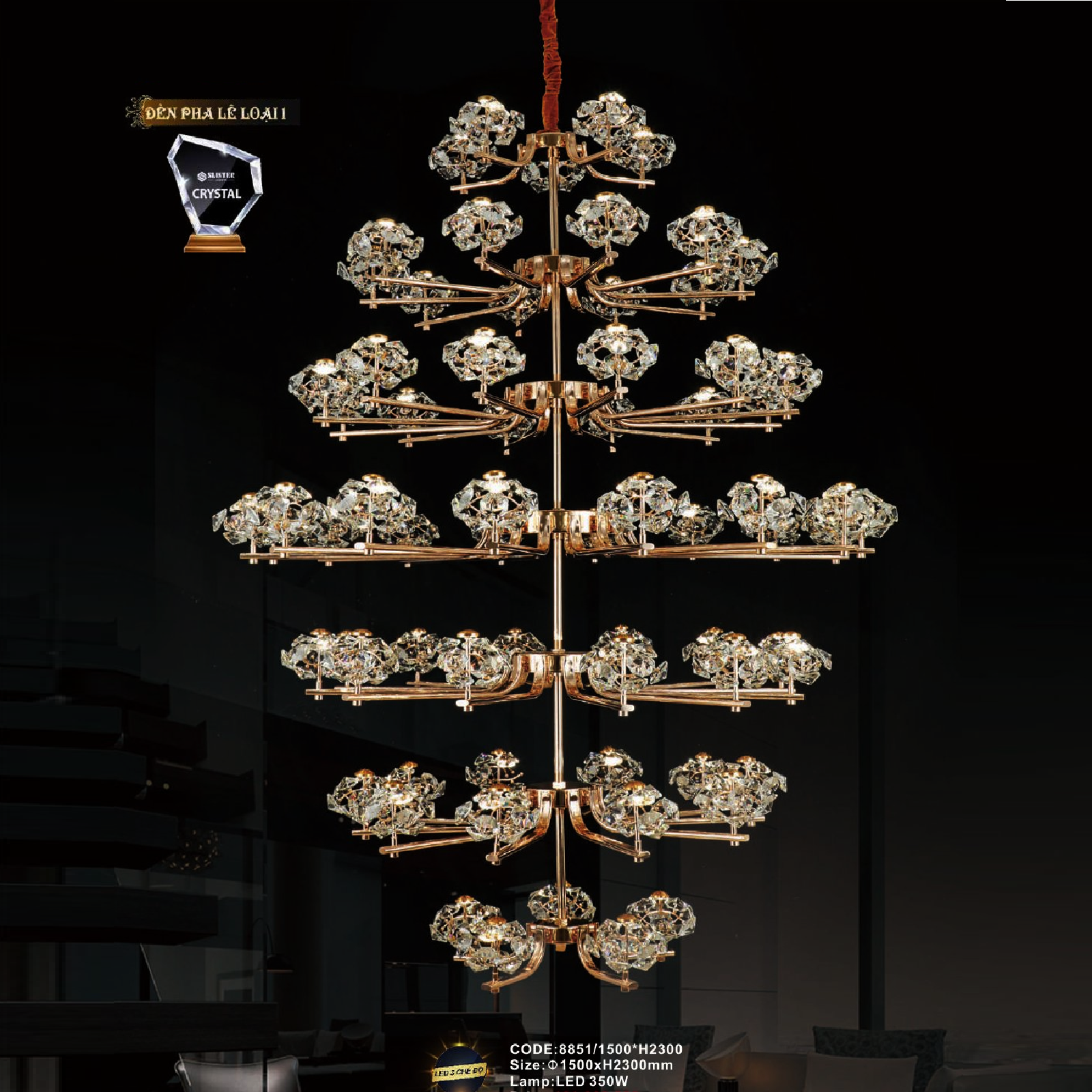 CODE: 8825/1200: Đèn thả Phale K9 Cao cấp - KT: Ø1200mm x H1950mm - Bóng đèn E14 x 96 bóng