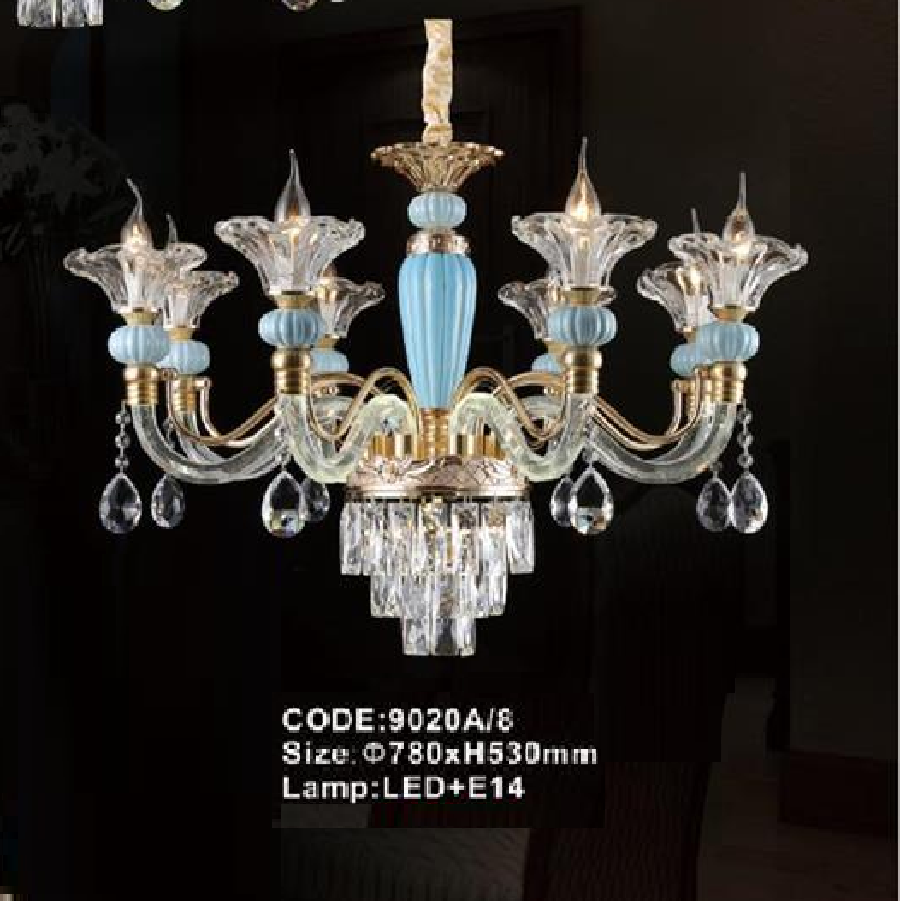 - Sản phẩm: CODE: 9020A/8: Đèn chùm nến 8 tay - KT: Ø780mm x H530mm - Đèn nến chân E14 x 8 + Đèn LED