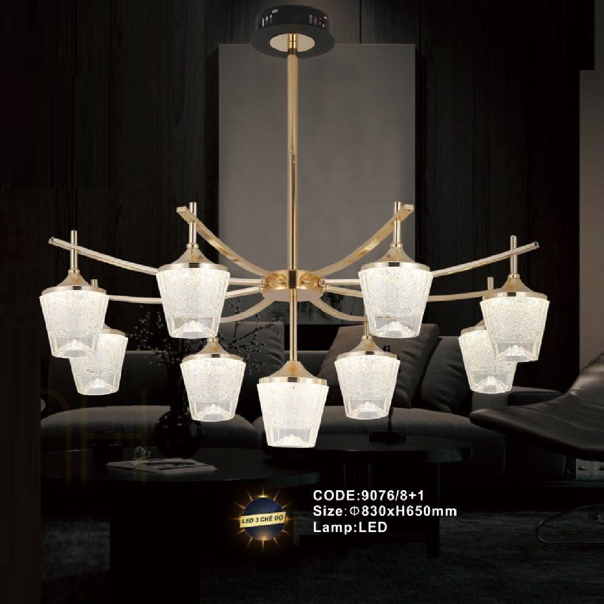 • Sản phẩm: CODE: 9076/8+1: Đèn chùm LED 9 tay chao quả bi - KT: Ø830mm x H650mm - Đèn LED đổi 3 màu