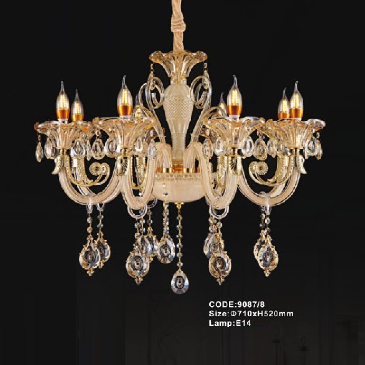 CODE: 9087/8: Đèn chùm nến 8 tay - KT: Ø710mm x H520mm - Bóng đèn nến E14 x 8 bóng