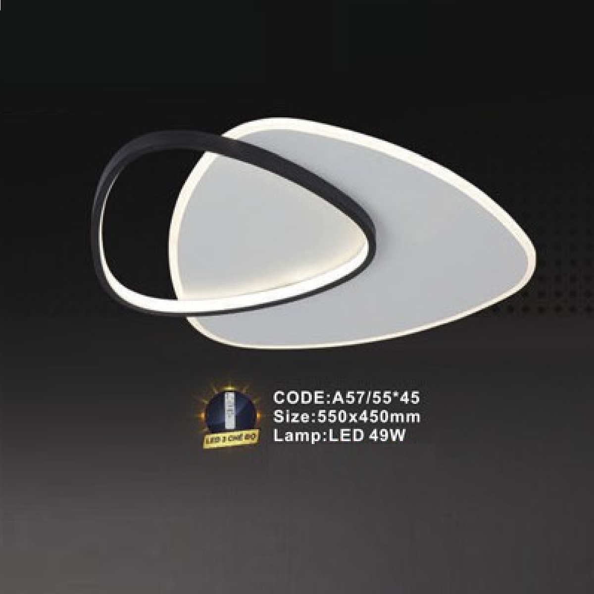 • Sản phẩm: CODE: A57/55*45: Đèn áp trần LED - KT: L550mm x W450mm - Đèn LED 49W ánh sáng đổi 3 màu