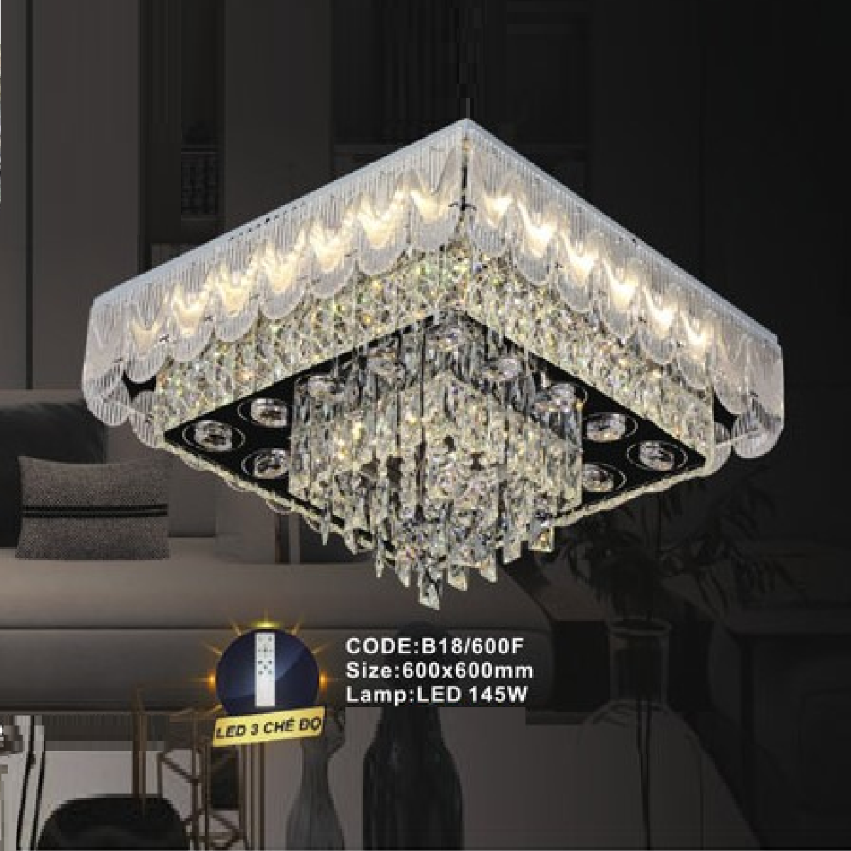 - Sản phẩm: CODE: B18/600F: Đèn áp trần LED vuông - KT: L600mm x W600mm - Đèn LED 145W, ánh sáng đổi 3 màu