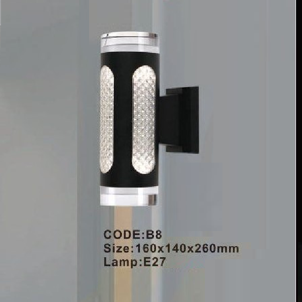 5. CODE: B8: Đèn gắn tường vách ngoài - KT: 160mm x 140mm x H260mm - Bóng đèn E27 x 2 bóng
