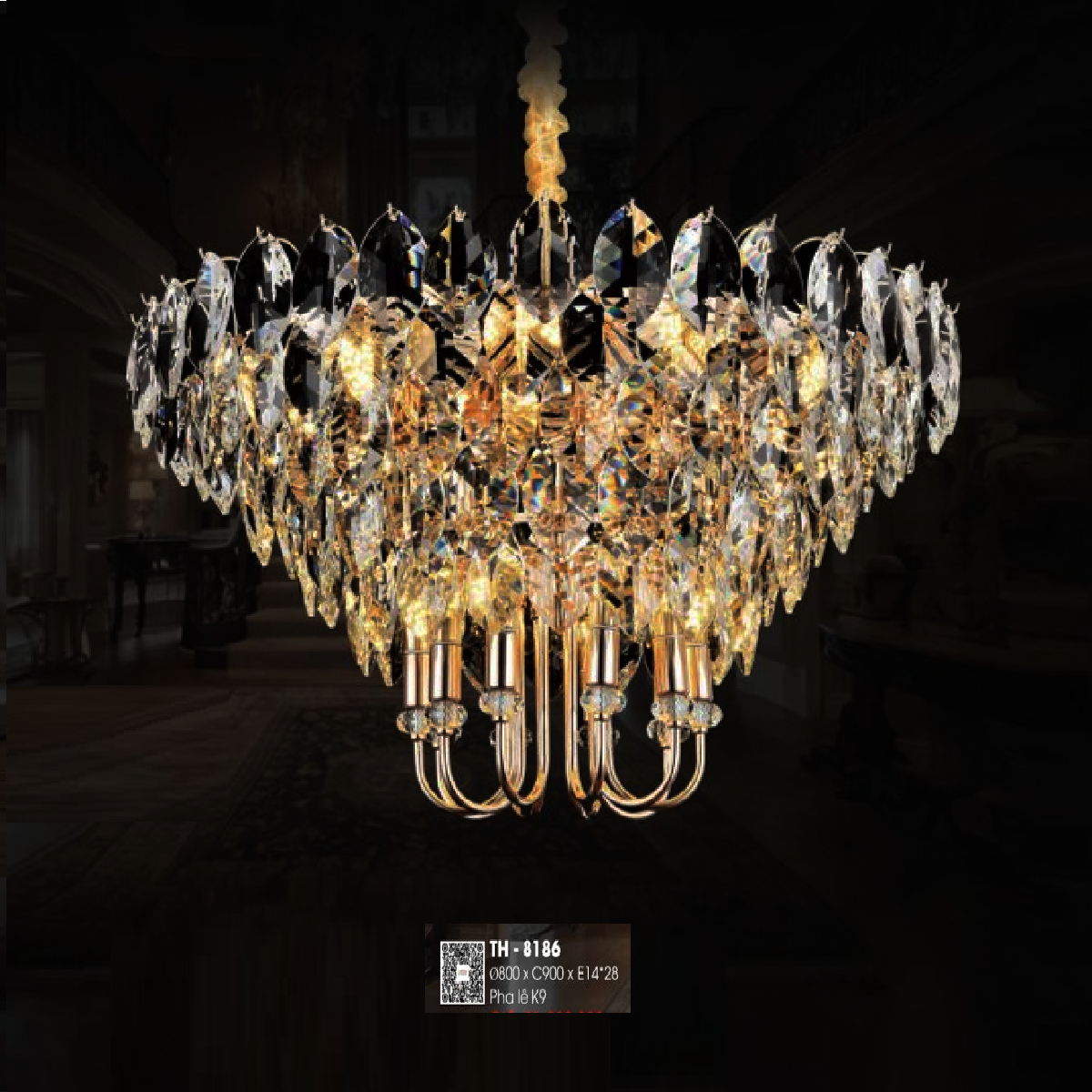 - Sản phẩm: TH - 8186: Đèn thả Phale K9 cao cấp - KT : Ø800mm x H900mm - Đèn E14x 28 bóng