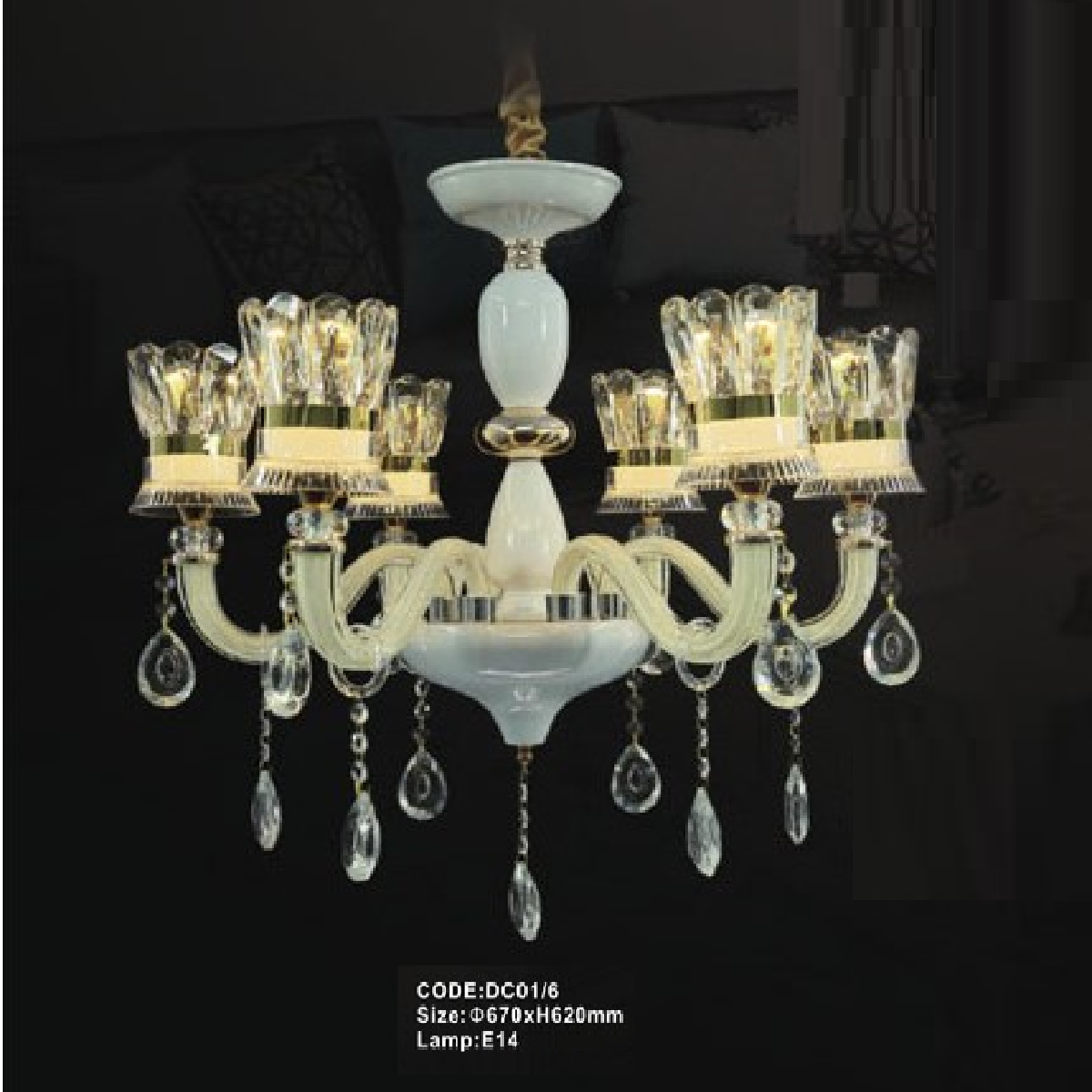 5. CODE: DC01/6: Đèn chùm 6 tay - KT: Ø670mm x H620mm - Bóng đèn E14 x 6 bóng
