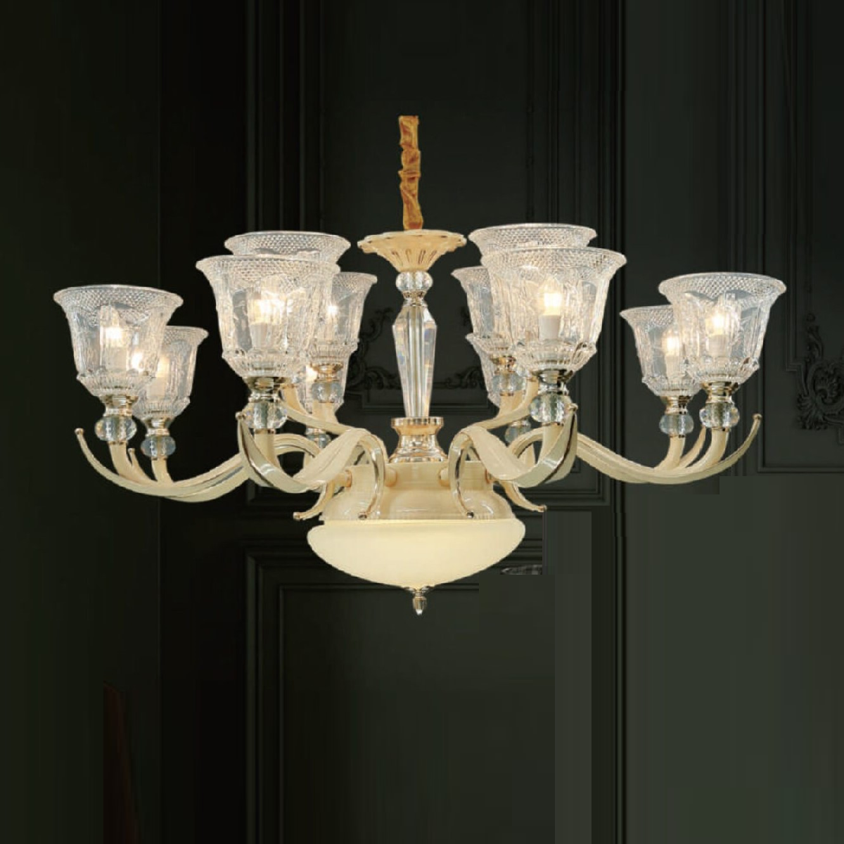 • Sản phẩm: CODE: DC06/8+4: Đèn chùm 12 tay chao thủy tinh - KT: Ø950mm x H520mm - Bóng đèn E14 x 12 bóng