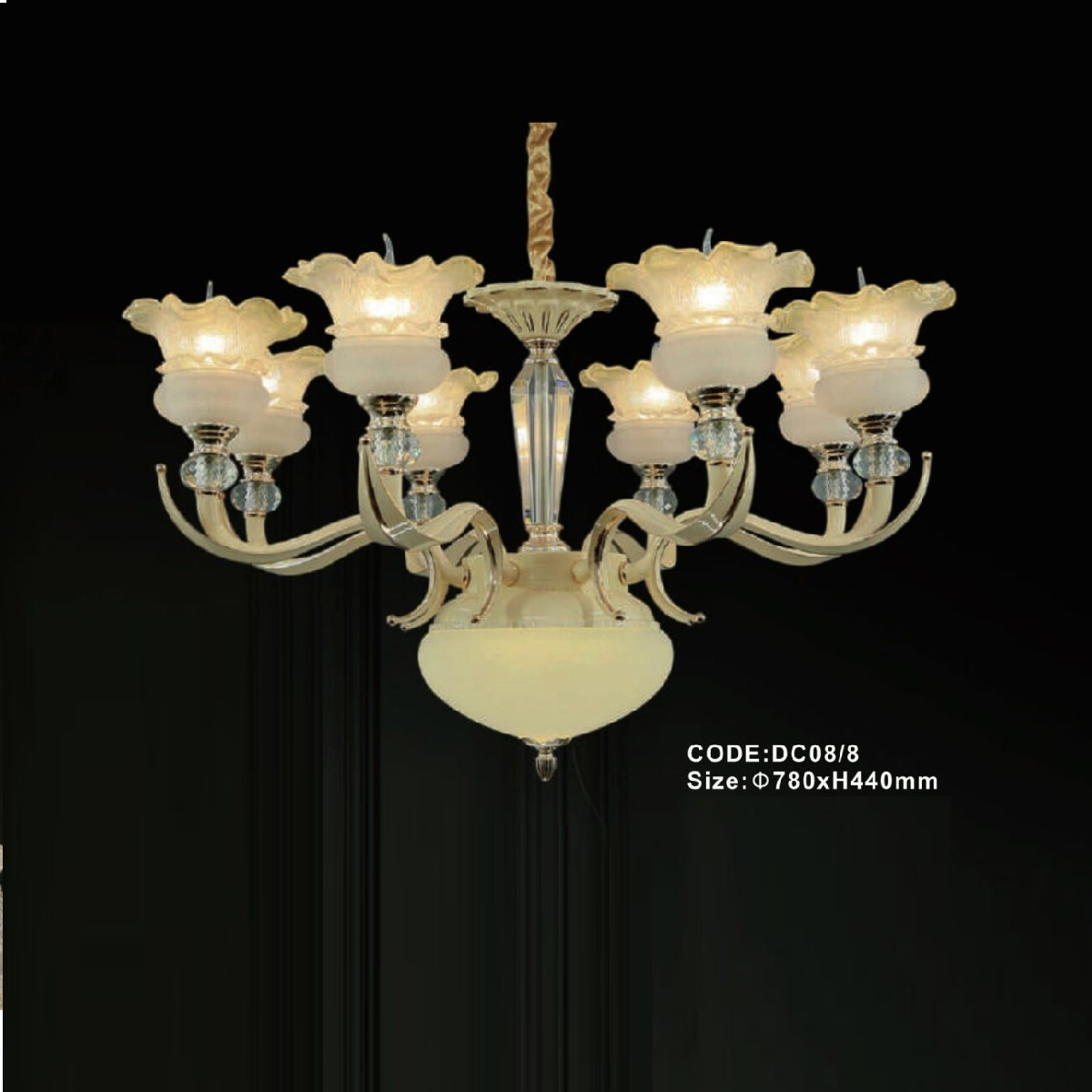 CODE: DC08/8: Đèn chùm 8 tay chao thủy tinh - KT: Ø780mm x H440mm - Bóng đèn E14 x 8 bóng