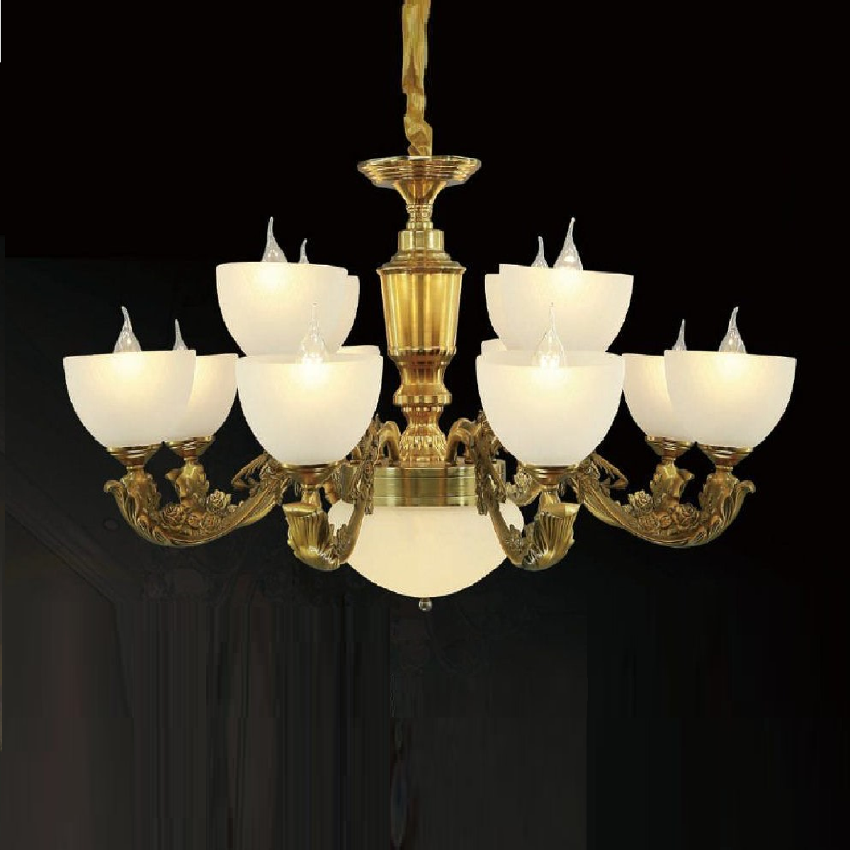 CODE: 9830 - 15: Đèn chùm đồng chao đá 15 tay - KT: Ø1000mm x H600mm - Bóng đèn chân E14 x 15 bóng