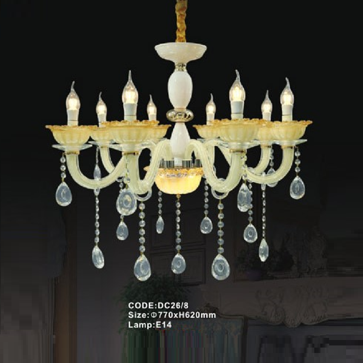 CODE: DC26/8: Đèn chùm nến 8 tay - KT: Ø770mm x H620mm - Bóng đèn nến E14 x 8 bóng