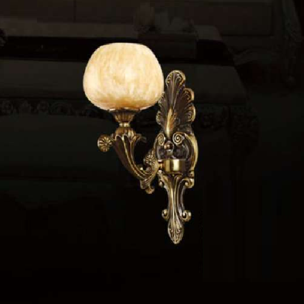 CODE: DD9126/1: Đèn gắn tường đồng chao đá 1 bóng - KT: Ø180mm x H400mm - Bóng đèn E27 x 1 bóng