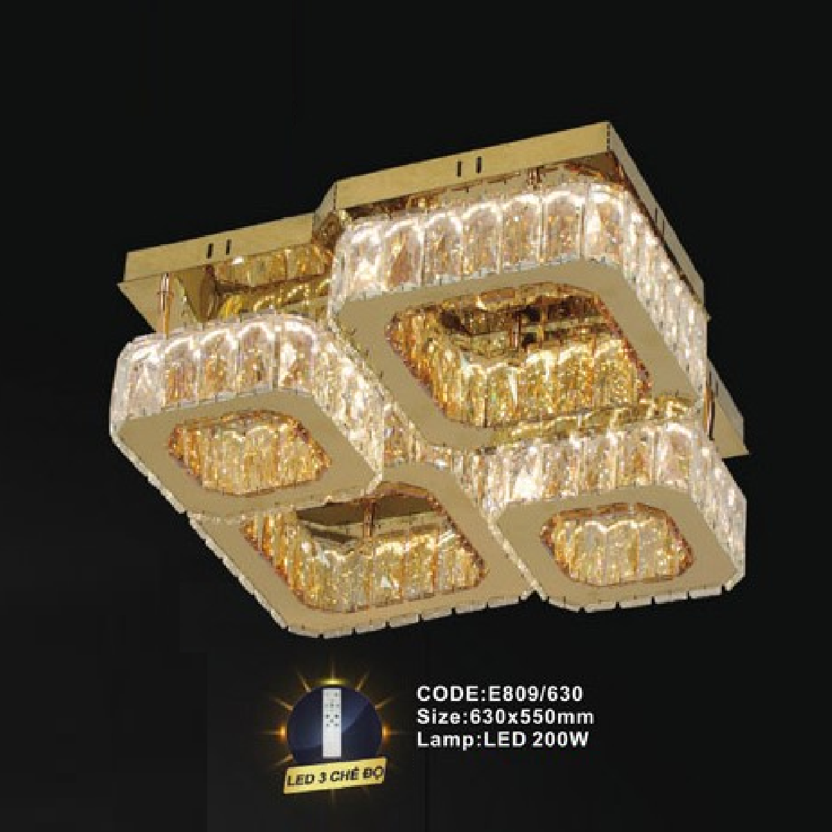 - Sản phẩm: CODE: E809/630: Đèn áp trần LED - KT: 630mm x 550mm - Đèn LED 200W ánh sáng đổi 3 màu