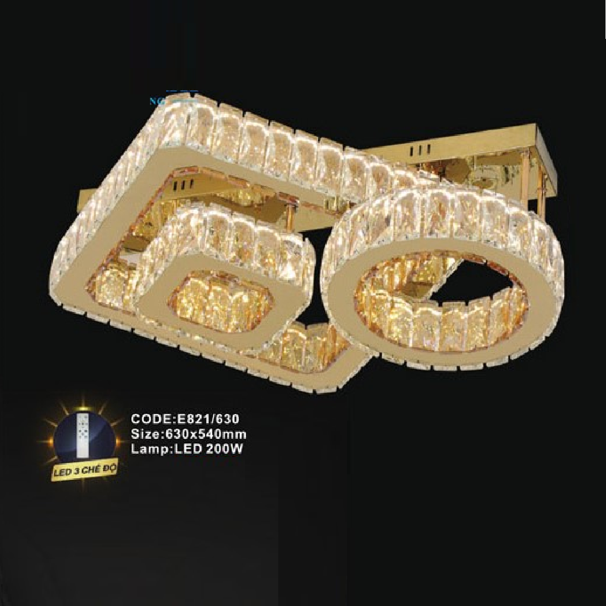 • Sản phẩm: CODE: E821/630: Đèn áp trần LED - KT:630mm x 540mm - Đèn LED 200W ánh sáng đổi 3 màu