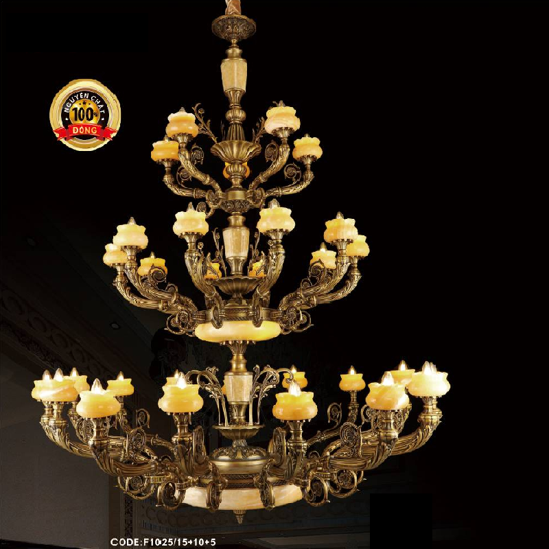 - Sản phẩm: CODE: F1025 /15+10+5: Đèn chùm đồng chao đá 30 tay - KT: Ø1900mm x H1550mm - Đèn chân E14 x 30 bóng