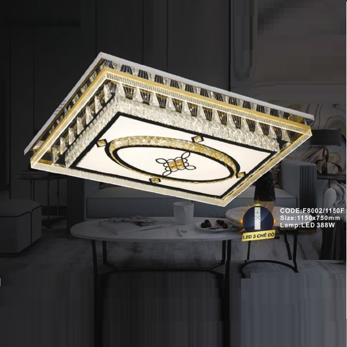 - Sản phẩm: CODE: F8002/1150F: Đèn áp trần chữ nhật LED - KT: L1150mm x W750mm - Đèn LED 388W ánh sáng đổi màu