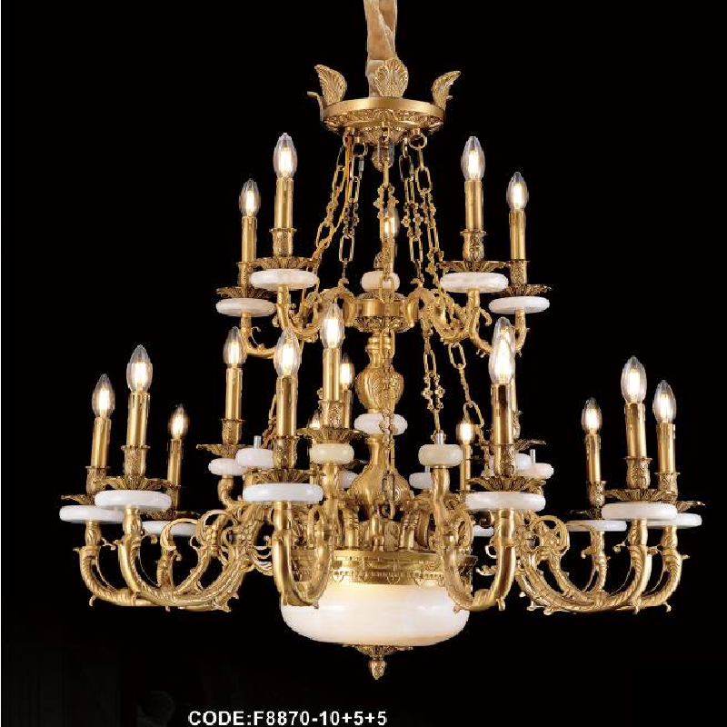 - Sản phẩm: CODE: F8870/10+5+5: Đèn chùm đồng 20 tay - KT: Ø1050mm x H1000mm - Đèn chân E14 x 20 bóng