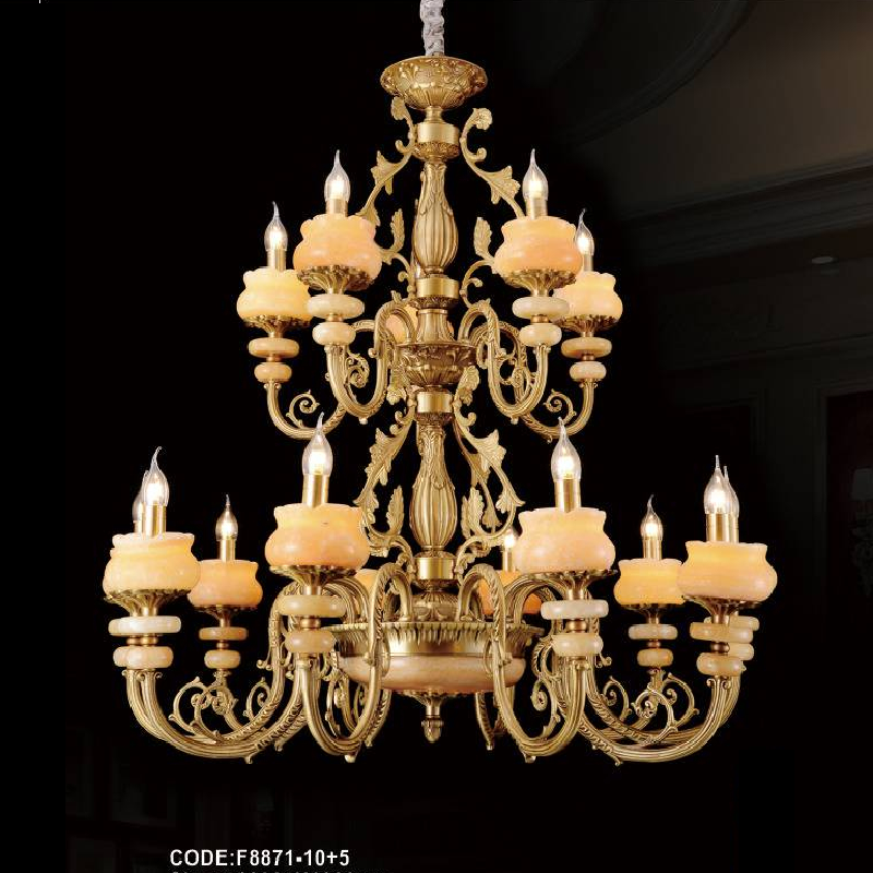 - Sản phẩm: CODE: F8871/10+5: Đèn chùm đồng 15 tay - KT: Ø1200mm x H1000mm - Bóng đèn chân E14 x 15 bóng