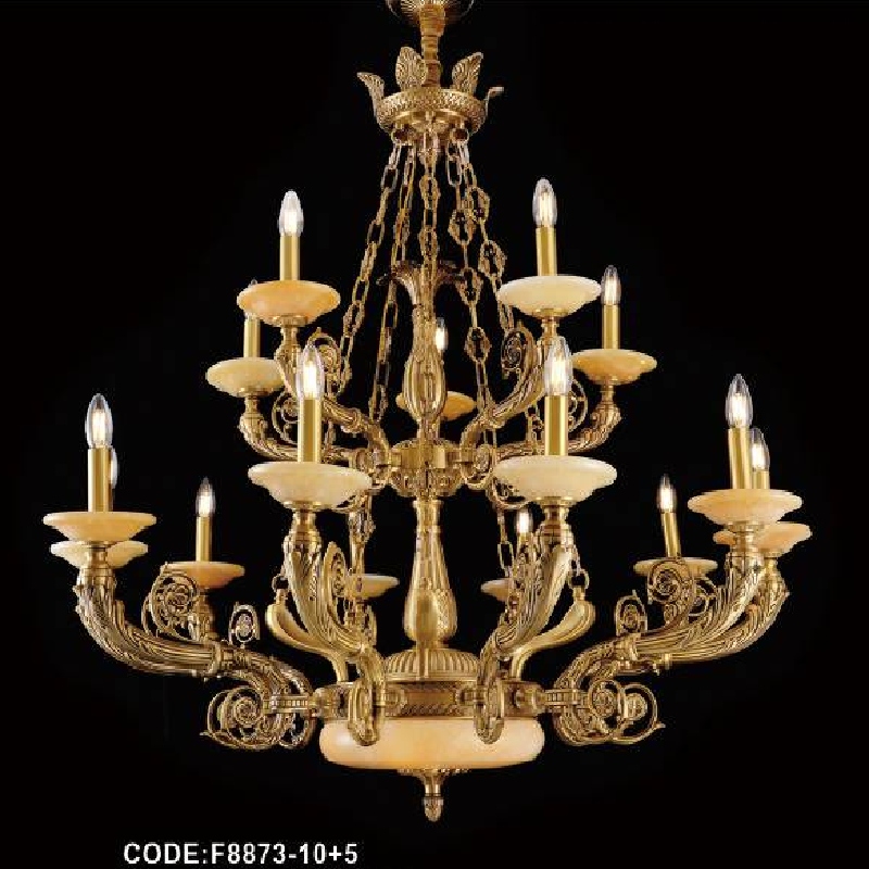 • Sản phẩm: CODE: F8873/10+5: Đèn chùm đồng đá 15 tay - KT: Ø1100 x H1100mm - Bóng đèn chân E14 x 15 cái