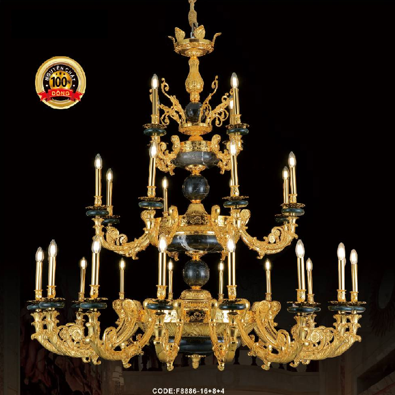 • Sản phẩm: CODE: F8886/16+8+4: Chùm đồng đá đen 28 tay - KT: Ø1500mm x H1450mm - Đèn chân E14 x 28 bóng ( tính riêng)- Đặt hàng