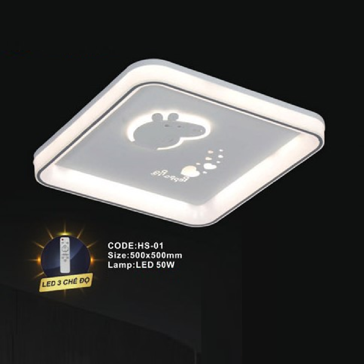 CODE: HS-01: Đèn áp trần LED - KT: L500mm x W500mm - Đèn LED 50W ánh sáng đổi 3 màu
