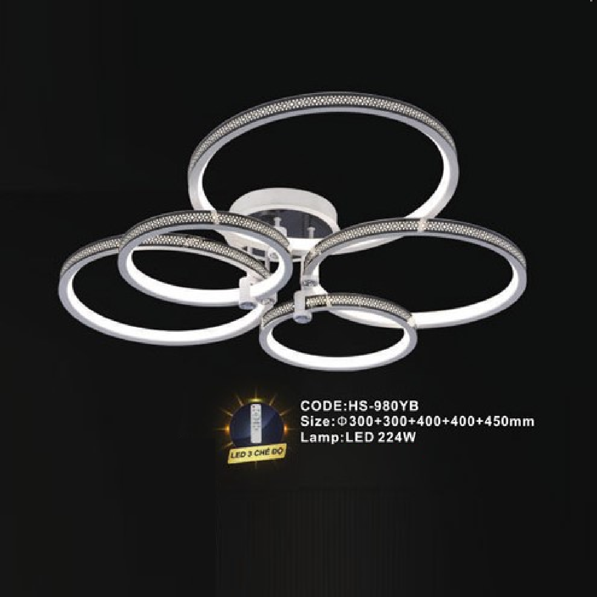 • Sản phẩm: CODE: HS - 980YB: Đèn áp trần LED Mica - KT: Ø(300+300+400+400+450)mm - Đèn LED 224W ánh sáng đổi 3 màu